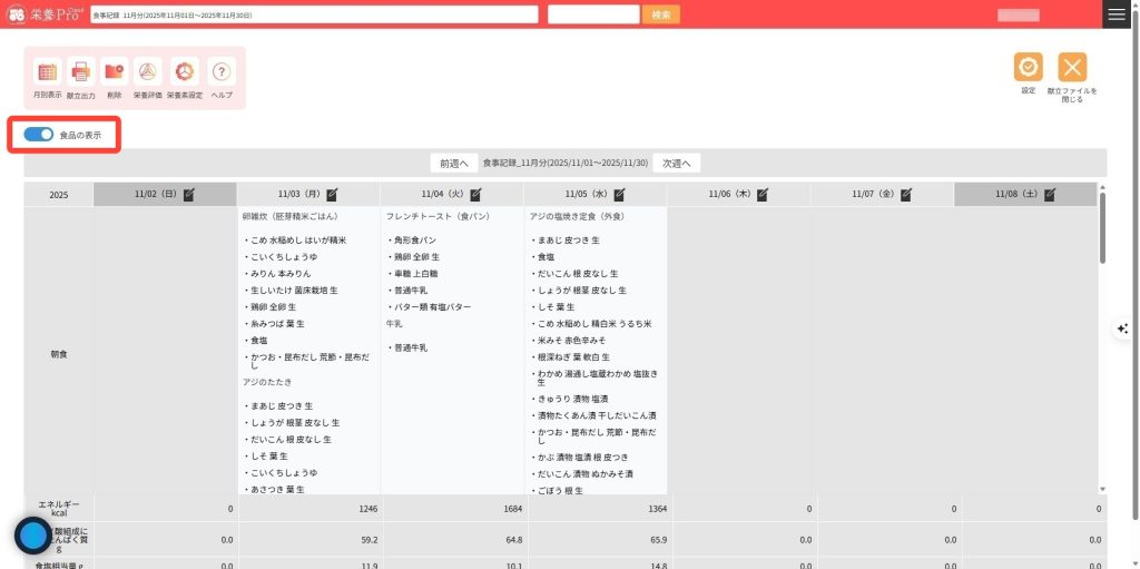 新規献立の作成は、以下のページをご確認ください。※リンクを貼る
