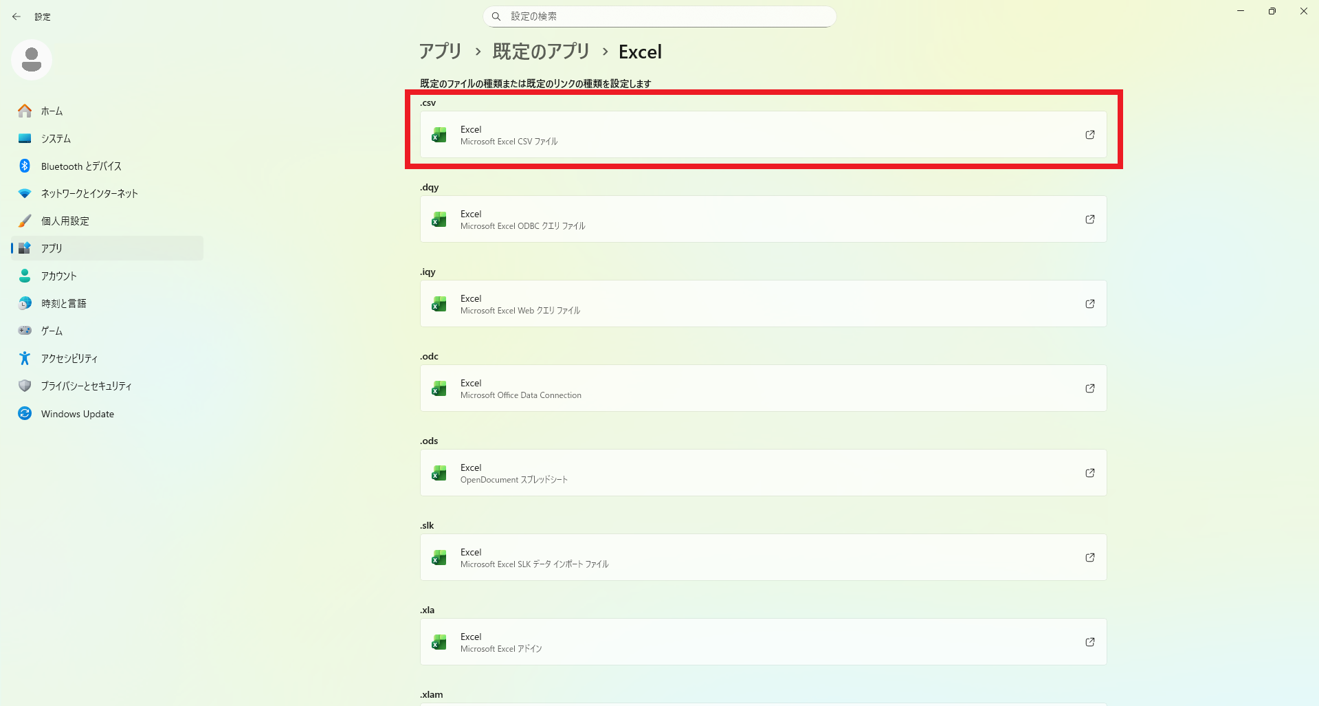 お使いの端末にて「.csv」のアプリケーションの規定プログラムをご確認ください。
